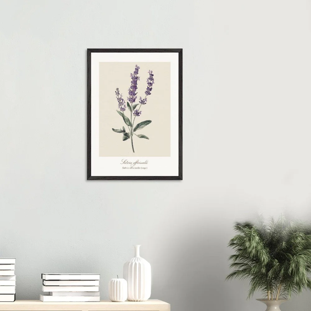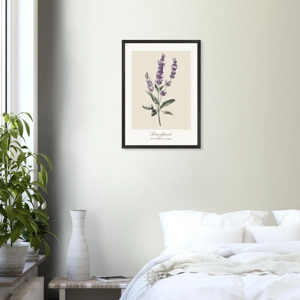 With its silvery-green leaves and rich texture, Salvia officinalis has long been associated with wisdom, healing, and protection. Its muted tones and organic form lend themselves beautifully to earthy, bohemian interiors. Ideal for kitchens or relaxed living spaces, this print works effortlessly on its own or as part of a curated herb series. PRODUCT DETAILS • Framed Print - Ready-to-hang, responsibly sourced oak or ash • Paper - Museum-quality paper—off-white, uncoated, 250 gsm • Protection - Shatterproof plexiglass protects the framed art